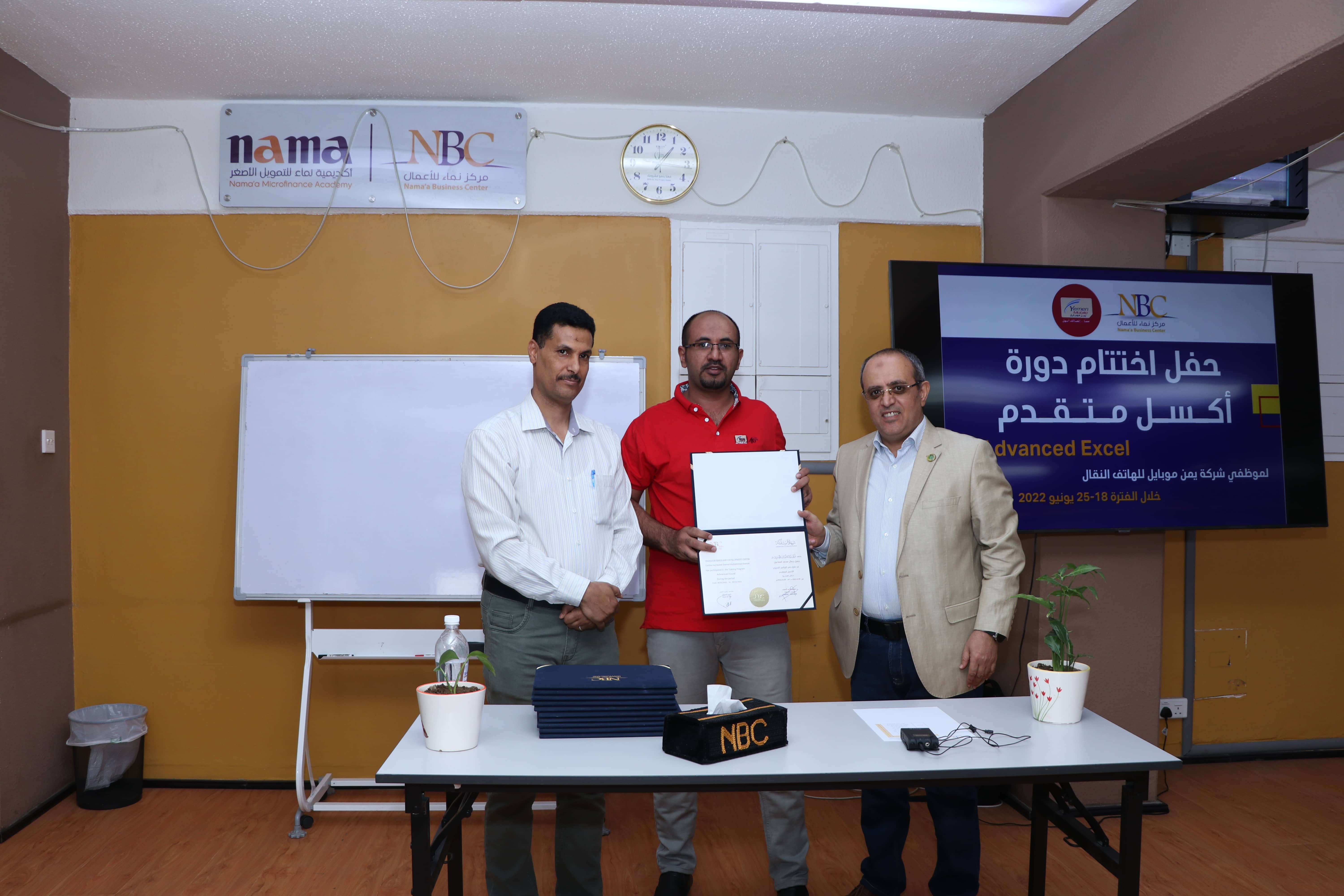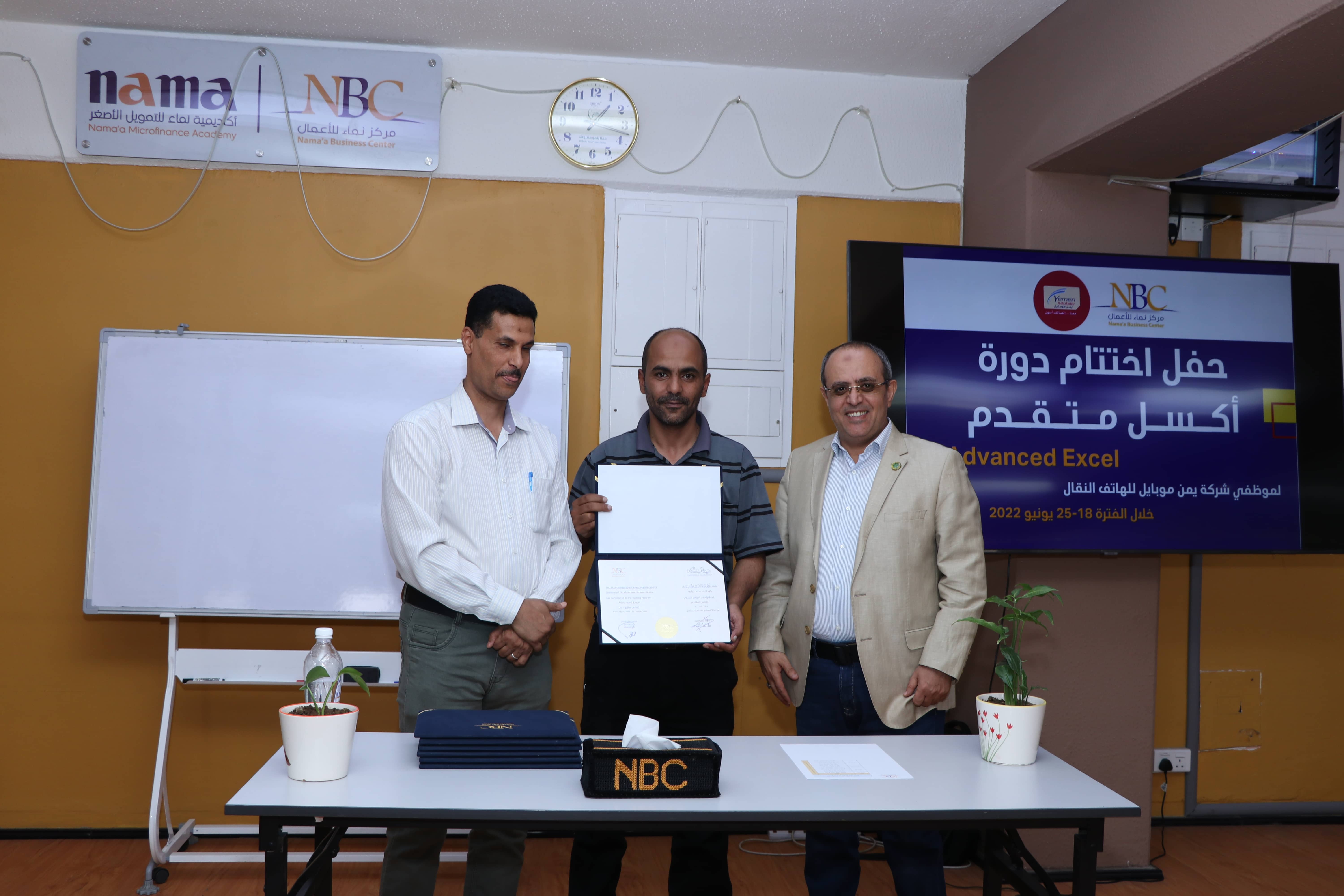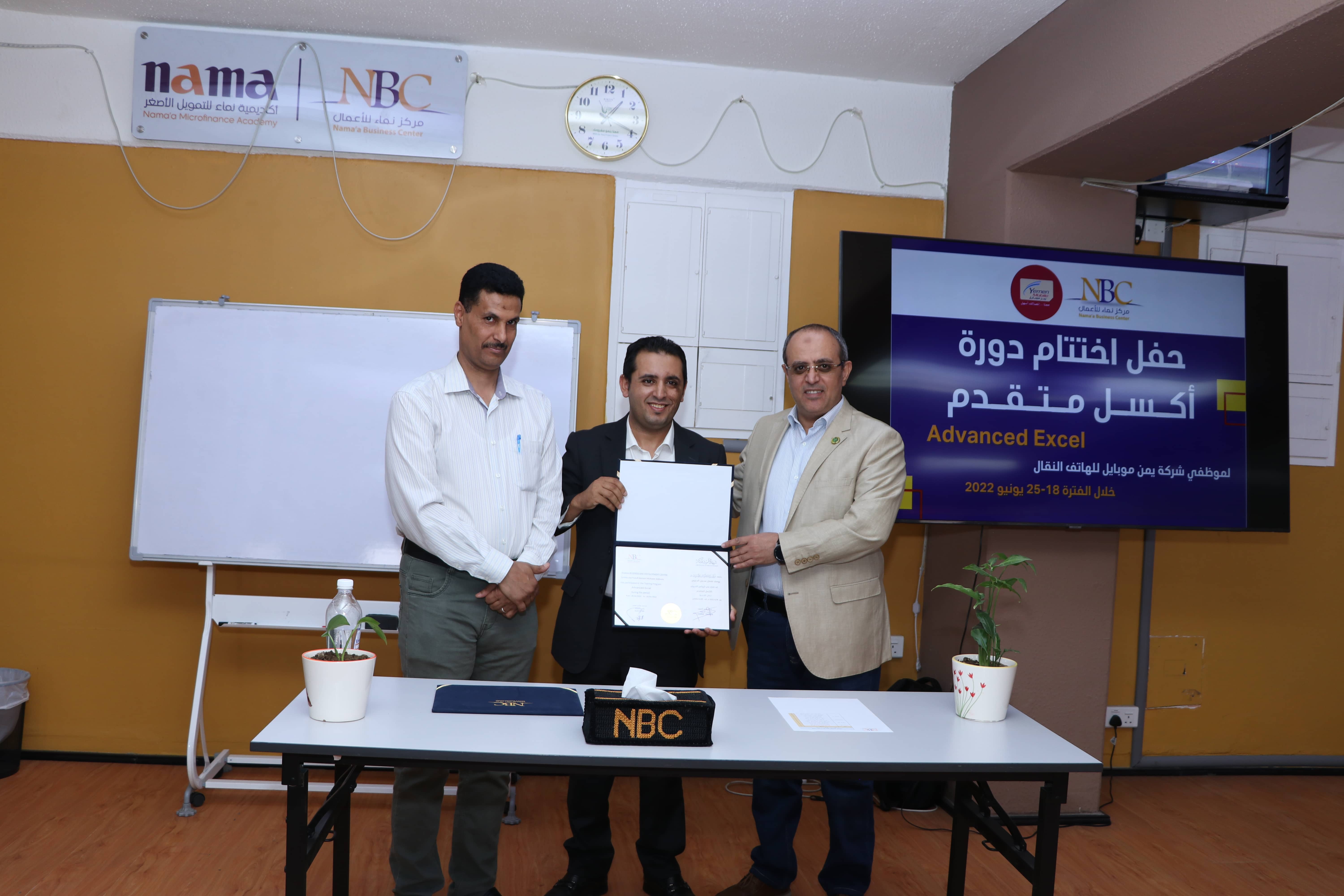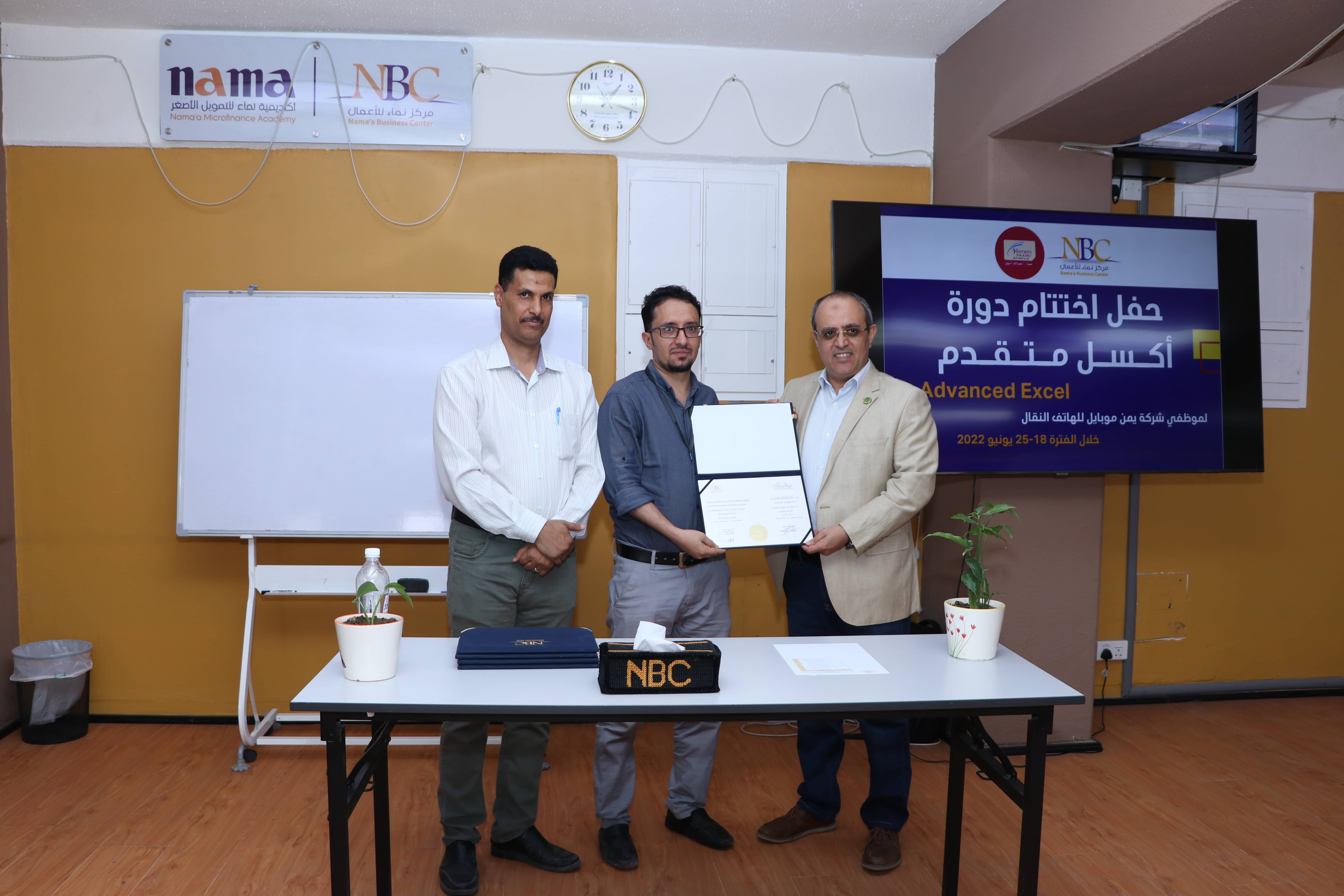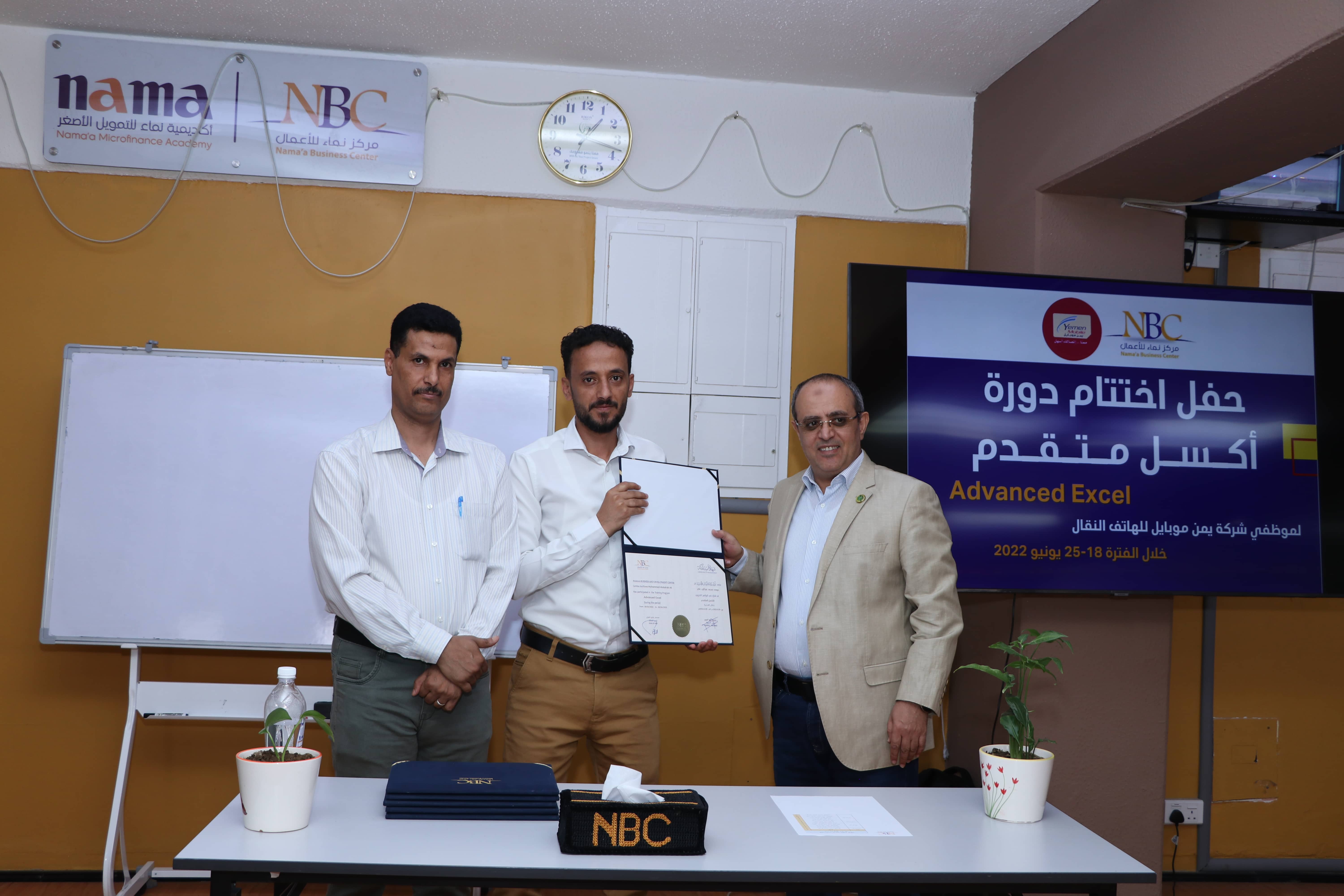 تلقى 13 متدرباً من موظفي شركة يمن موبايل للهاتف النقال مهارات تدريبية في مجال " الإكسل المتقدم" Microsoft Advanced Excel" نظمها مركز نماء للأعمال والتنمية.