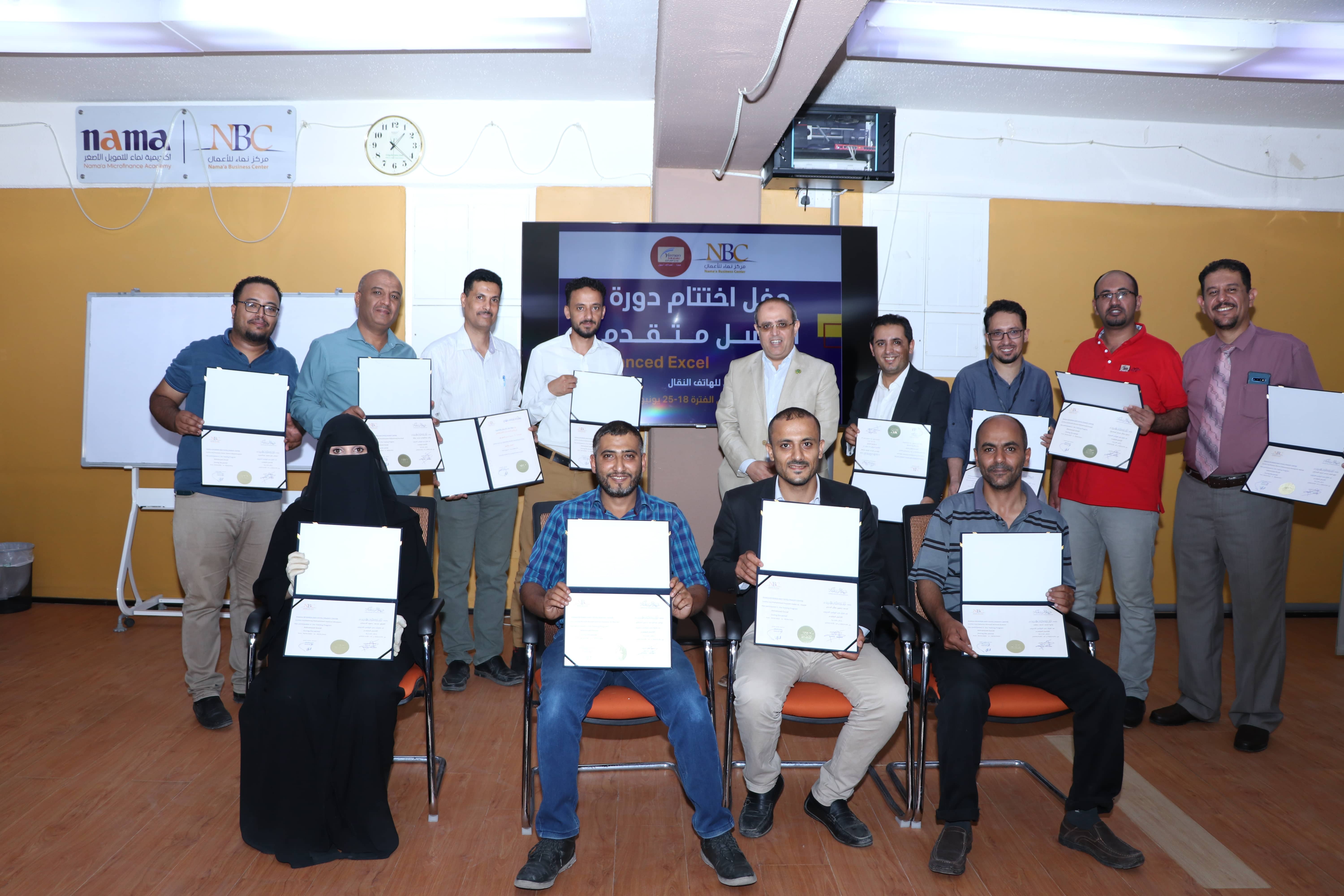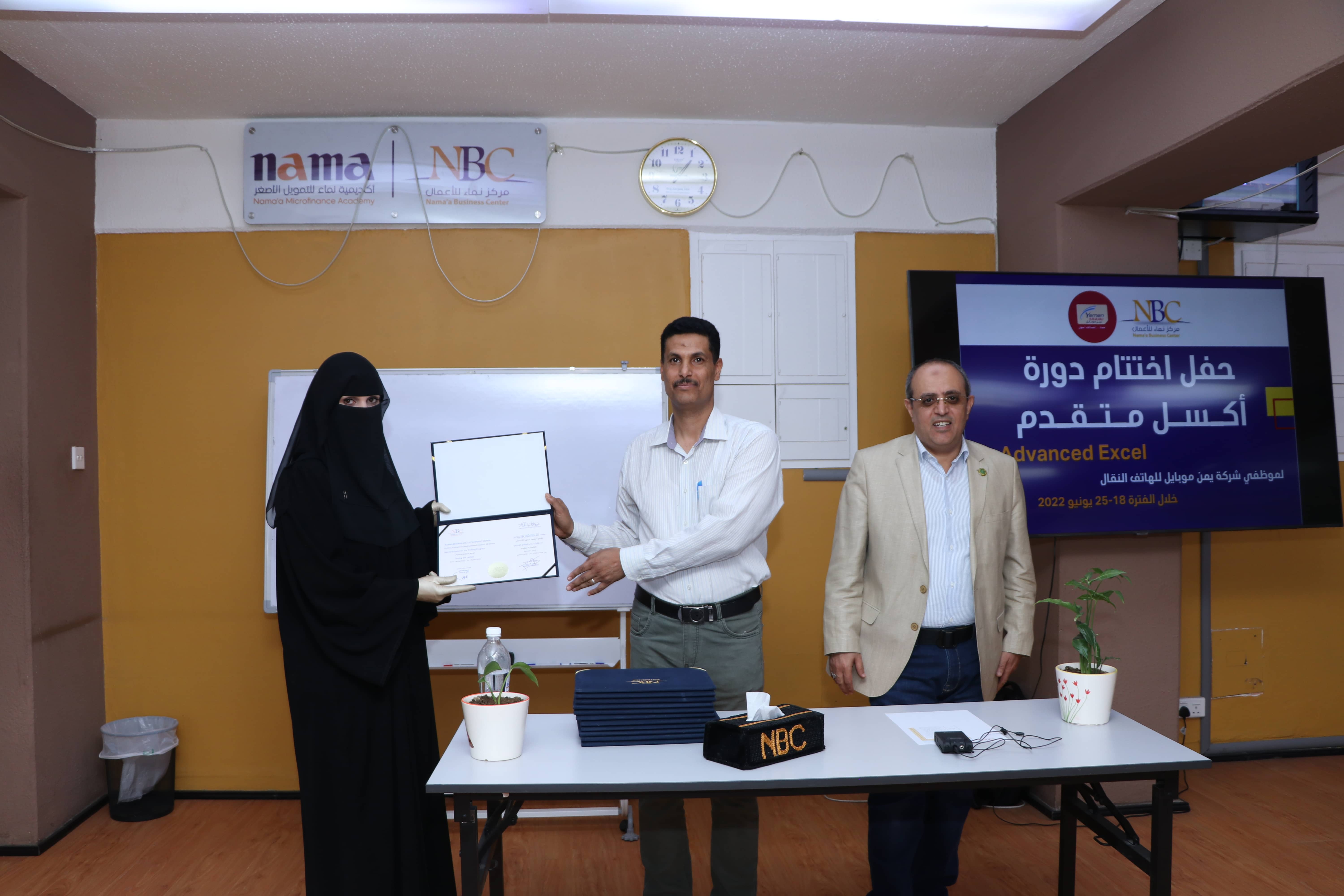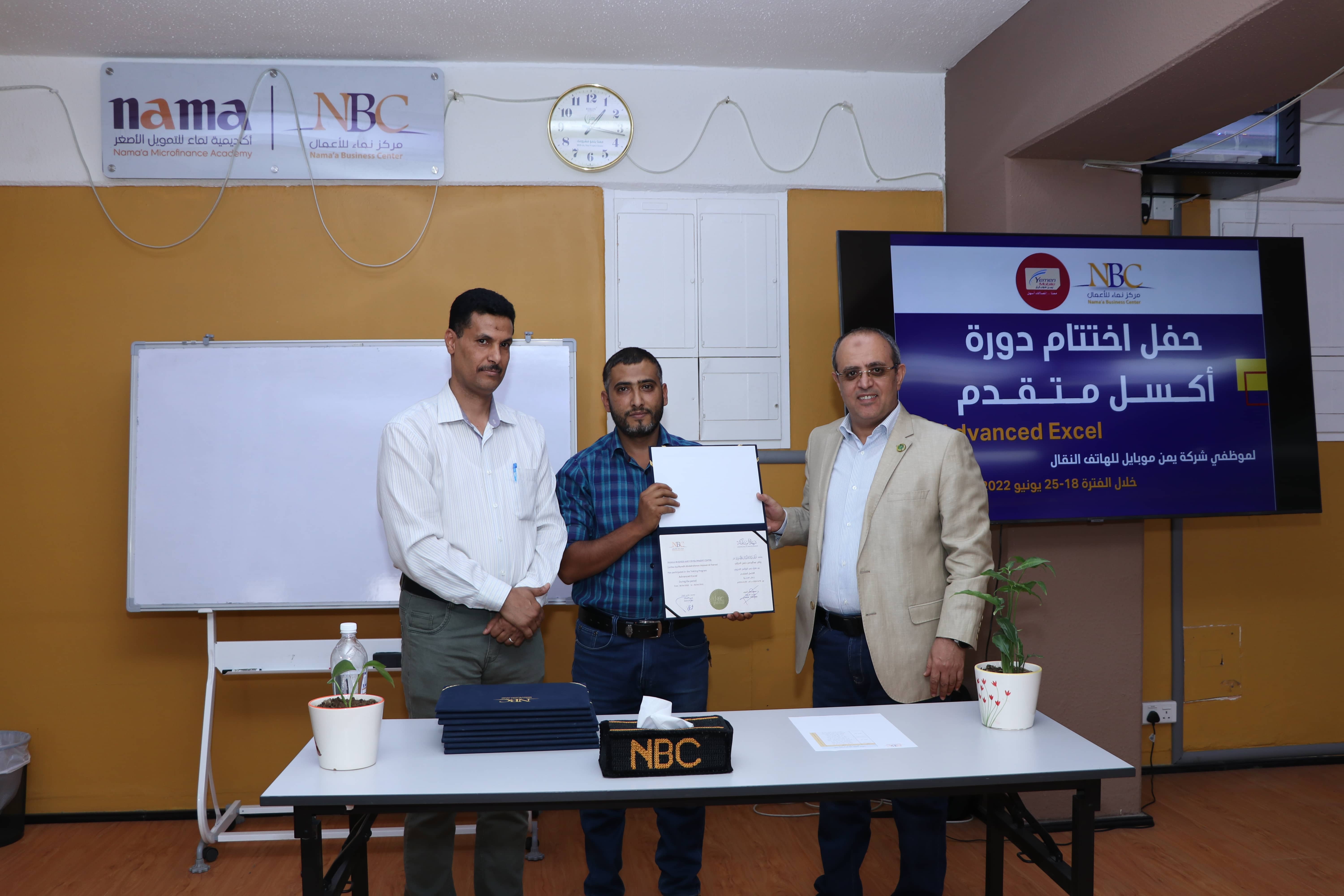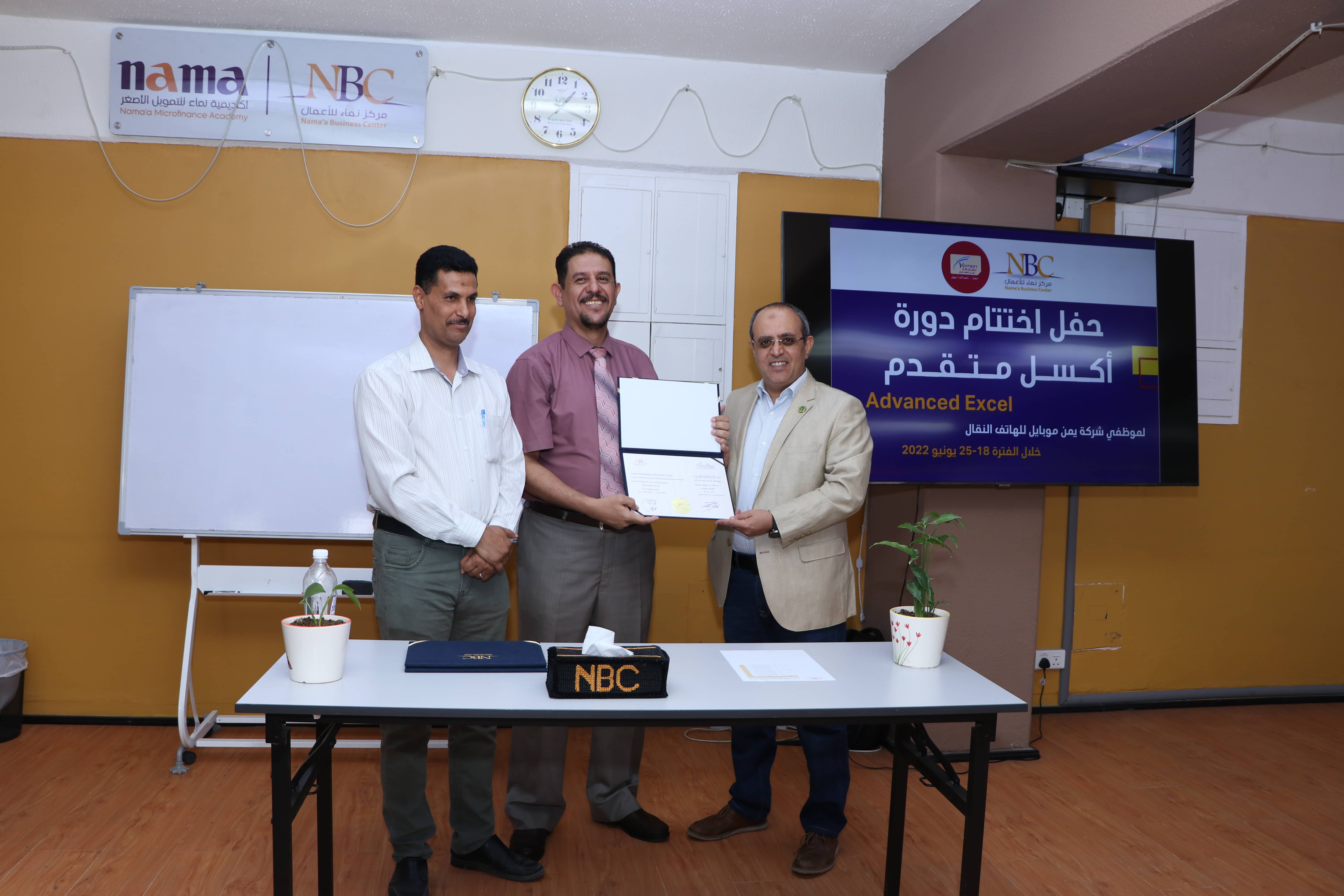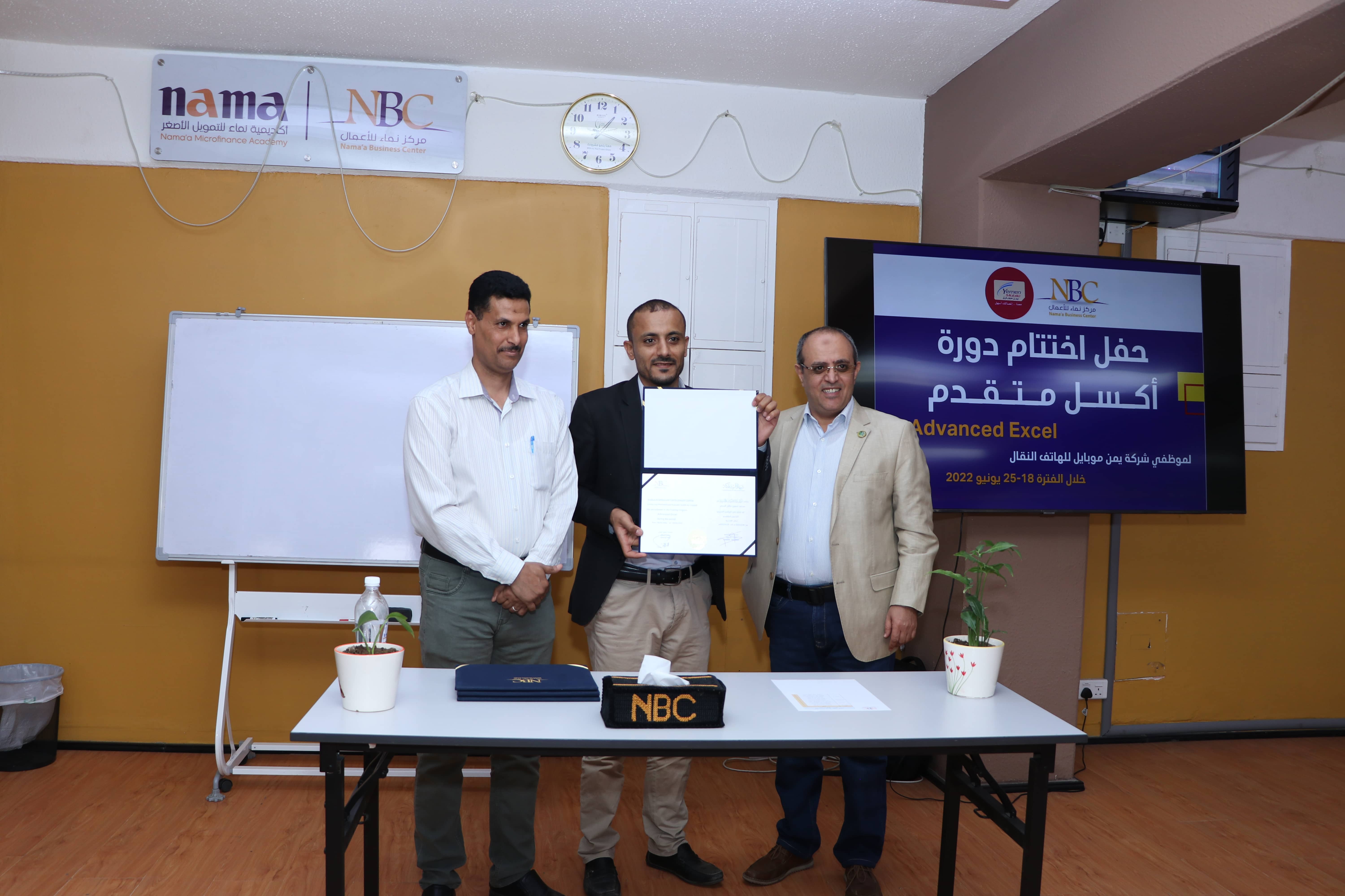 تلقى 13 متدرباً من موظفي شركة يمن موبايل للهاتف النقال مهارات تدريبية في مجال " الإكسل المتقدم" Microsoft Advanced Excel" نظمها مركز نماء للأعمال والتنمية.