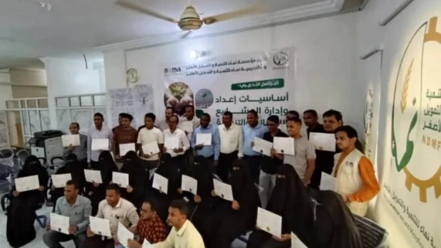 مؤسسة نماء للتنمية والتمويل الأصغر تختتم برنامجًا تدريبيًا في إعداد وإدارة المشاريع الإنسانية والتنموية لموظفي فرعي الحديدة والمراوعة.