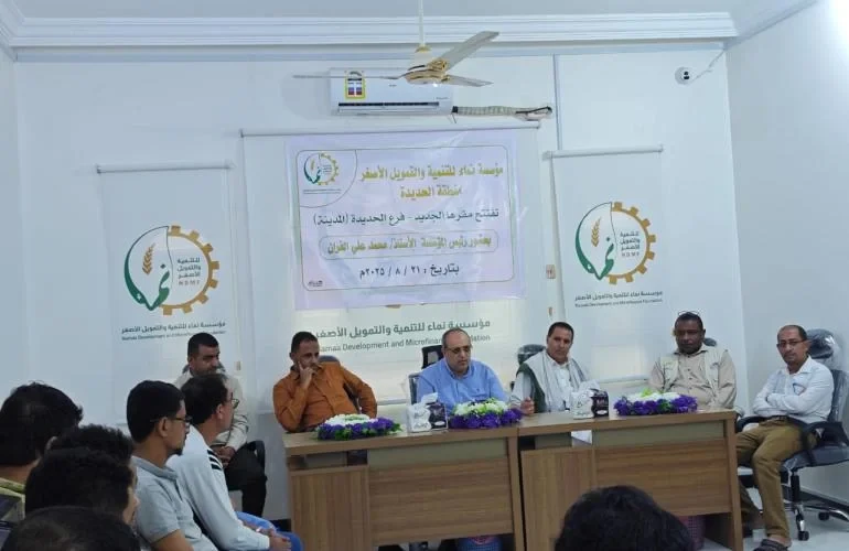 افتتحت مؤسسة نماء للتنمية والتمويل الأصغر، مقرها الجديد لفرع الحديدة (المدينة)، وذلك بحضور رئيس المؤسسة الأستاذ/ محمد علي الفران.